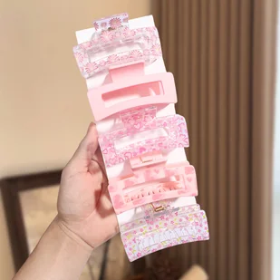 TEMU 5 szt. Słodkich Różowych Różowych Truskawkowych Klipsów do Włosów z Nadrukiem Miłości, Transparentne Kwadratowe Klipsy z Uchwytem, Jednolity