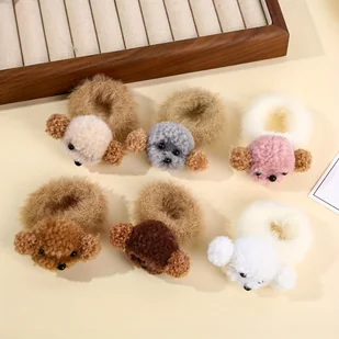 TEMU 6 szt. Pluszowe Gumki do Włosów z Pieskiem, Urocze Opaski na Jesień i Zimę, Wszechstronne i Trwałe Akcesoria do Włosów, Zestaw Akcesoriów do