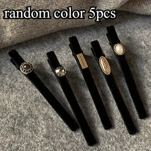 TEMU Losowy zestaw 5 czarnych klipsów do włosów z aksamitu i cyrkonii, klipsy typu "" w stylu jesienno-zimowym, dodatki wstępnie wykończone