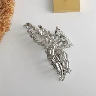 TEMU Prosty i Elegancki Klips do Włosów z Srebrnymi Skrzydełkami, Średni Rozmiar – Akcesorium do Stylizacji Włosów dla Kobiet, Wysokiej Jakości
