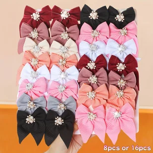 TEMU Zestaw 8/16 szt. Urocze Spinki do Włosów z Kokardami i Cyrkoniami - Wielokolorowe (Różowy, Czerwony, Szary, Czarny) z Błyszczącymi Kokardami dla