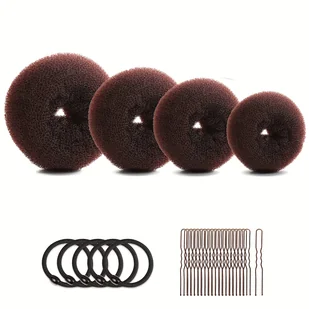 TEMU Zestaw do Robienia Pączków - Obręcze z 5 Opaskami, 20 Spinkami i 5 Koków (1 Mały, 1 Średni, 1 Duży, 1 Bardzo Duży), Czarny Beżowy Brązowy –