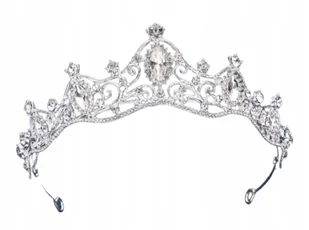 Zapraszam do zakupu tiary w kolorze srebra, która ozdobiona jest cyrkoniami. Jest ona metalowa, mocowana na głowie wsuwkami. Ma 4,5 cm wysokości. Diadem świe...