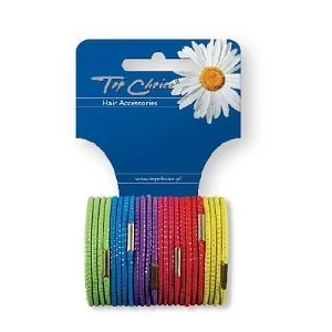 Top Choice Gumki do włosów 21282 24 szt. . Zestaw 24 wielokolorowych gumek do włosów Wykonane z wytrzymałego poliestru, są lekkie i przyjemne w użytkowaniu Odpowiednie do każdego rodzaju włosów Za pomocą takiej gumki możesz stworzyć dowolny rodzaj fryzury Gumki są delikatne dla włosów. . .