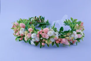 R��cznie robiony w Polsce wianek komunijny. Obw��d 52 cm.