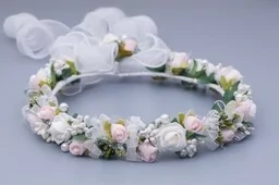 Wianek komunijny Połączenie matowej tafty z błyszczącymi kwiatami z akrylowych kamyków. Całość uzupełnia pompon z lokami W wianek wbudowany elastyczny drucik, który pozwala modelować - dopasowywać jego kształt oraz jego średnicę. Produkt Polski , najnowsza kolekcja! Zalety wianków komunijnych ze sztucznych kwiatów Wianki komunijne to ozdoby cieszące się coraz większym zainteresowaniem. Ich rosnąca popularność wynika z połączenia najwyższego komfortu z pięknym i dziewczęcym wyglądem. Ten niewielki dodatek komunijny sprawia, że każda dziewczynka przystępująca do pierwszej komunii świętej prezentuje się uroczo i naturalnie.