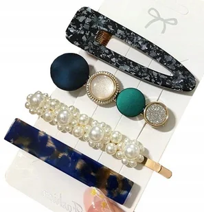 Zestaw spinek - 4 sztukiEleganckie spinki do włosówMateriał metal + akrylKolor według zdjęćRozmiar:długość : 7.5 cmSzerokość spinki : 2 cm