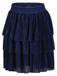Spódnica w kolorze granatowym - pas / ściągacz: elastyczny - dolny brzeg: z falbankami - detale: plisy - krój: prosty - look: jednokolorowy