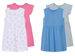 lupilu® Sukienki dziecięce z bawełny, 2 sztuki Opis produktu wspieramy zrównoważoną uprawę bawełny w Afryce wygodne w noszeniu dzięki czystej bawełnie ecoprint - 100 % ekologiczny nadruk na tkaninie 1x z falbankami na ramionach z gumką w talii można suszyć w suszarce 2 sztuki Cechy produktu table{width:100%;}td{padding-right: 30px; padding: 0.5rem; border-bottom: 0.0625rem solid #e3e4e5;} tr: nth-child(odd) {background-color: #F2F3F4;} Kolory: niebieski/jasnoniebieski, różowy/biały Wzór: biały: wzór papugi, jasnoniebieski: wzór w kropki, różowy: