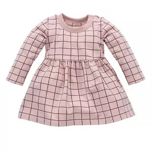Dziewczęca sukienka z długim rękawem, w kolekcji Romantic uszyta została z delikatnej z bawełny w kolorze różowym z dodatkiem elastanu. Ozdobiona została mod...