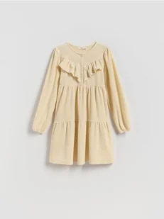 Reserved - Dzianinowa sukienka z falbaną - kremowy