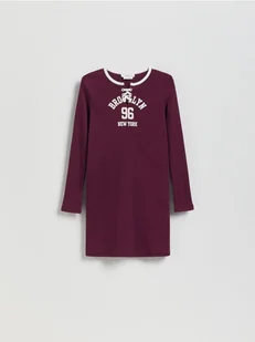 Reserved - Dzianinowa sukienka z nadrukiem - ciemnofioletowy
