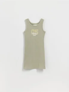 Reserved - Prążkowana sukienka z haftem - oliwkowy