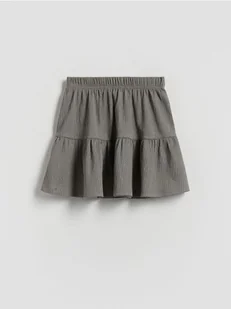 Spódnica w kształcie litery A, uszyta z gładkiej tkaniny.