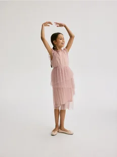 Sukienka o prostym kroju, uszyta z tkaniny.