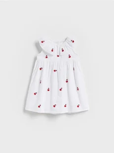 Reserved - Sukienka z haftowanym wzorem - złamana biel