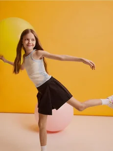 Szorty z zakładką imitującą spódnice, uszyte z bawełnianej tkaniny.