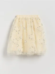 Reserved - Tiulowa spódnica z cekinami - kremowy
