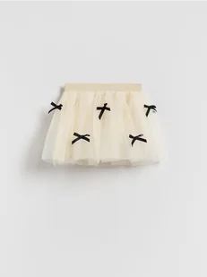 Reserved - Tiulowa spódnica z kokardkami - kremowy