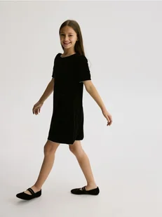 Sukienka o regularnym kroju, wykonana z welurowej tkaniny.