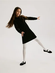 Sukienka o regularnym fasonie, wykonana z welurowego materiału.