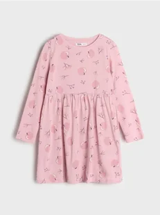 Sinsay - Sukienka - fioletowy - okrągły dekolt,długie rękawy,rozszerzana ku dołowi z odcięciem w talii,ozdobny wzór po całości
