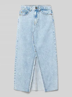 Spódnica jeansowa dziecięca Gracia;Czysta bawełna;Prosty krój;Zapięcie na guzik i zamek błyskawiczny;Wpuszczane kieszenie;Jednolity kolor;Rozporek;Frędzle;Szerokość w pasie w rozmiarze 140: 31 cm;Długość całkowita w rozmiarze 140: 82 cm