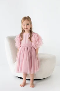 Sukienka Diana z miękkiego tiulu w kolorze brudny róż. Ręcznie szyta z wyselekcjonowanych tkanin, wygodna, komfortowa i bardzo efektowna. Zapinana na złoty guziczek z tyłu, zdobiona falbanami na rękawk ...
