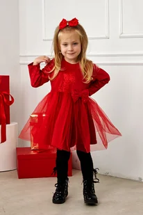 Świąteczna czerwona sukienka dla dziewczynki z tiulem Sandra