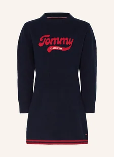 Dla dziewczynek. Gładki ścieg. Krój dopasowany w talii z lekko rozszerzaną spódnicą. Prążkowany okrągły dekolt. Długie rękawy.