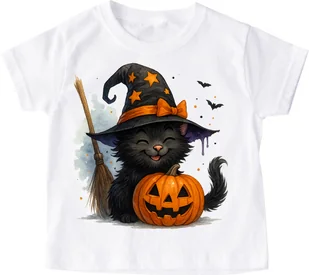 Biała koszulka na Dzień dyni z fajnym nadrukiem kotdynia105