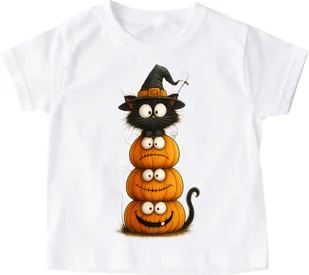 Biała koszulka na Dzień dyni z fajnym nadrukiem kotdynia72