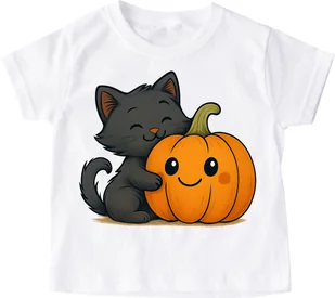 Biała koszulka na Dzień dyni z fajnym nadrukiem kotdynia83