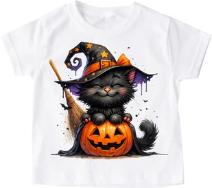Biała koszulka na Dzień dyni z fajnym nadrukiem kotdynia96
