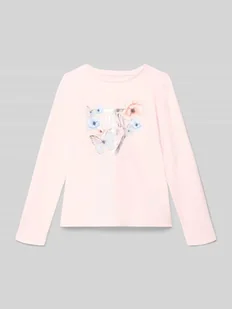 Bluzka z długim rękawem dziecięca Guess;Mieszanka bawełny i elastanu;Krój regular fit;Okrągły dekolt;Nadruk z logo;Długość tyłu w rozmiarze 116: 42 cm