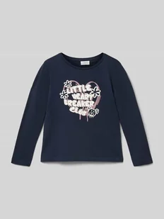 Bluzka z długim rękawem dziecięca s.Oliver RED LABEL;Efekt: jednolity kolor;Krój: Krój loose fit;Aplikacja: Nadruk z motywem;Dekolt: Okrągły dekolt;Rękaw: długi;Wykończenie materiału: Dżersej;Materiał: czysta bawełna