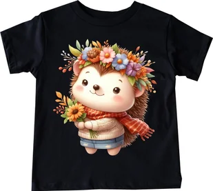 czarna Koszulka z jeżem dla dziewczynki - wzór jeż72
