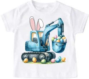 Koszulka dla chłopczyka na Wielkanoc z koparką Ta wyjątkowa koszulka to idealny wybór dla miłośników uroczego designu! Wykonana z wysokiej jakości bawełny, zapewnia komfort noszenia przez cały dzień. Na przodzie koszulki znajduje się delikatny nadruk z uroczym zajączkiem, który dodaje stylizacji lekkości i radości. Materiał: 100% bawełna, miękka i przewiewnaKrój: Klasyczny, unisex, idealnie dopasowuje się do sylwetkiNadruk: Trwały i odporny na pranie, z żywymi koloramiRozmiary: