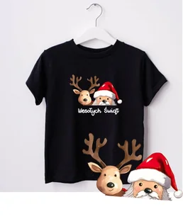 Koszulka dla dziecka na święta - wesołych świąt Mikołaj z reniferkiem