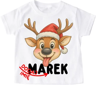 Koszulka dla dziecka z reniferem i imieniem na mikołajki - wzór renifer22