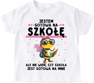 Koszulka dla dziewczynki do szkoły - JESTEM GOTOWA NA SZKOŁĘ , ALE CZY SZKOŁA JEST GOTOWA NA MNIE ? Koszulka z nadrukiem – biała, 100% bawełna Wygodna i stylowa koszulka z uroczym nadrukiem to idealny wybór na każdą okazję! Wykonana w 100% z wysokiej jakości bawełny, zapewnia komfort noszenia oraz przewiewność, co sprawia, że jest doskonała na ciepłe dni. Cechy produktu: Kolor: biały – uniwersalny, pasuje do każdej stylizacjiMateriał: 100% miękka bawełna – delikatna dla skóry dzieckaWysokiej jakości nadruk – trwały, odporny na pranieKlasyczny krój – wygoda i swoboda ruchów Dzięki uniwersalnemu fasonowi i przyjaznemu materiałowi, koszulka sprawdzi się zarówno na co dzień, jak i na specjalne okazje. Doskonały pomysł na prezent dla każdego ! Dostępna zarówno w rozmiarach dziecięcy jak i dla dorosłych /
