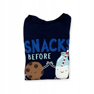 Urocza koszulka chłopięca z nadrukiem "Snacks Before Snoozes" – idealna na co dzień! Przedstawia zabawny motyw ciastka i mleka – świetna opcja dla małego łasucha. Rozmiar: 5T (ok. 110 cm / 5 lat) Kolor: granatowy ? Materiał: miękka bawełna (info z metki) ? Nadruk: ciastko i mleko z napisem ? Stan: