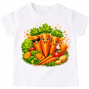 Koszulka z marchewką na dzień marchewki Koszulka dziecięca dla dziewczynki jak i chłopców. Materiał: bawełna Koszulka na Dzień Marchewki to idealny wybór dla osób, które lubią oryginalne ubrania z nadrukiem i poczuciem humoru. T-shirt z motywem marchewki świetnie sprawdzi się jako prezent na Dzień Marchewki, a także jako element codziennej stylizacji dla fanów zdrowego stylu życia i warzywnych motywów. Wykonana z wysokiej jakości bawełny koszulka z nadrukiem marchewki zapewnia komfort noszenia i trwałość. To doskonały pomysł na śmieszną koszulkę na prezent – zarówno dla niej, jak i dla niego.