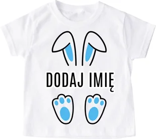 Koszulka NA WIELKANOC DLA DZIECKA Z IMIENIEM KRÓLIK - niebieskie uszka