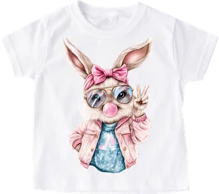 Koszulka z zajączkiem dla dziewczynki Ta wyjątkowa koszulka to idealny wybór dla miłośników uroczego designu! Wykonana z wysokiej jakości bawełny, zapewnia komfort noszenia przez cały dzień. Na przodzie koszulki znajduje się delikatny nadruk z uroczym zajączkiem, który dodaje stylizacji lekkości i radości. Materiał: 100% bawełna, miękka i przewiewnaKrój: Klasyczny, unisex, idealnie dopasowuje się do sylwetkiNadruk: Trwały i odporny na pranie, z żywymi koloramiRozmiary: