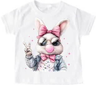 Koszulka z zajączkiem dla dziewczynki Ta wyjątkowa koszulka to idealny wybór dla miłośników uroczego designu! Wykonana z wysokiej jakości bawełny, zapewnia komfort noszenia przez cały dzień. Na przodzie koszulki znajduje się delikatny nadruk z uroczym zajączkiem, który dodaje stylizacji lekkości i radości. Materiał: 100% bawełna, miękka i przewiewnaKrój: Klasyczny, unisex, idealnie dopasowuje się do sylwetkiNadruk: Trwały i odporny na pranie, z żywymi koloramiRozmiary: