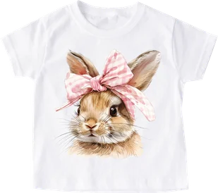 Koszulka z zajączkiem dla dziewczynki Ta wyjątkowa koszulka to idealny wybór dla miłośników uroczego designu! Wykonana z wysokiej jakości bawełny, zapewnia komfort noszenia przez cały dzień. Na przodzie koszulki znajduje się delikatny nadruk z uroczym zajączkiem, który dodaje stylizacji lekkości i radości. Materiał: 100% bawełna, miękka i przewiewnaKrój: Klasyczny, unisex, idealnie dopasowuje się do sylwetkiNadruk: Trwały i odporny na pranie, z żywymi koloramiRozmiary: