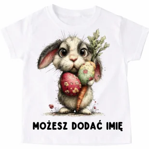 Koszulka wielkanocna z zajączkiem / królikiem – personalizowana z imieniem Szukasz idealnej koszulki na Wielkanoc? Nasza koszulka wielkanocna z zajączkiem to doskonały wybór dla całej rodziny! Uroczy motyw królika wprowadza wiosenny klimat i sprawia, że koszulka świetnie sprawdzi się podczas świątecznego śniadania, rodzinnych spotkań, sesji zdjęciowych czy jako prezent na Wielkanoc. To modna i wygodna koszulka na Wielkanoc dla dzieci i dorosłych, którą możesz dodatkowo spersonalizować. Personalizowana koszulka wielkanocna z imieniem Koszulka z królikiem może zostać wzbogacona o dowolne imię (opcja dodatkowa). Imię możemy umieścić: z przodu – pod nadrukiem zajączka, lub z tyłu Personalizowana koszulka wielkanocna to świetny pomysł na: