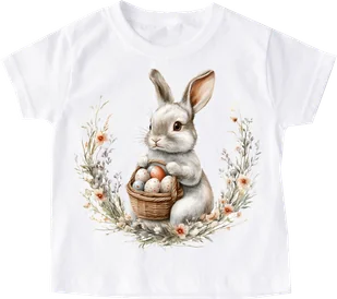 Koszulka z królikiem dla dziecka Ta wyjątkowa koszulka to idealny wybór dla miłośników uroczego designu! Wykonana z wysokiej jakości bawełny, zapewnia komfort noszenia przez cały dzień. Na przodzie koszulki znajduje się delikatny nadruk z uroczym zajączkiem, który dodaje stylizacji lekkości i radości. Materiał: 100% bawełna, miękka i przewiewnaKrój: Klasyczny, unisex, idealnie dopasowuje się do sylwetkiNadruk: Trwały i odporny na pranie, z żywymi koloramiRozmiary:
