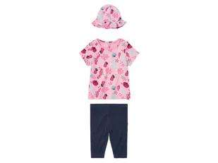 lupilu® Komplet dziewczęcy z bawełną (góra + dół + czapka) (86/92, Jasnoróżowy/granatowy)